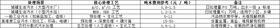 結合當前政策要求、技術水平和區域差異,以下為不同場景下的污水處理費用參考范圍(含核心支出,不含特殊補貼),供各主體核算時對標:
