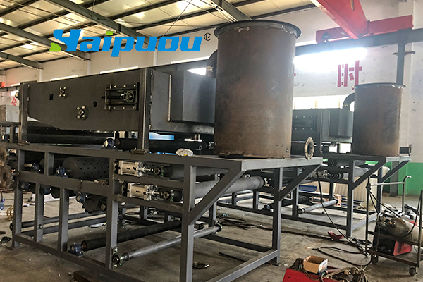 2、重力脫水段長,第一與第二重力脫水段總長5m多,使污泥在壓榨前充分脫水失去流動性。同時,重力脫水段還設置反轉等特殊機構,經(jīng)“楔”形、“S”形壓榨等作用使污泥濾餅獲得低的含水量。